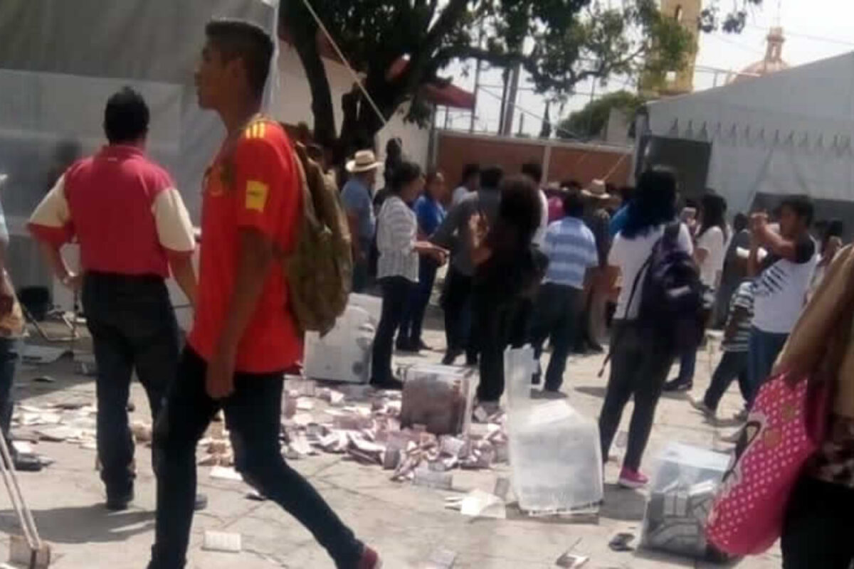 La escena se repite al norte y al sur de la ciudad de Puebla: disparos en la calle y en los patios de las secciones, destrozo de las casillas, robo de urnas, huida. Aquí, los instantes finales de la irrupción en la escuela Vicente Suárez, en Totimehuacán.